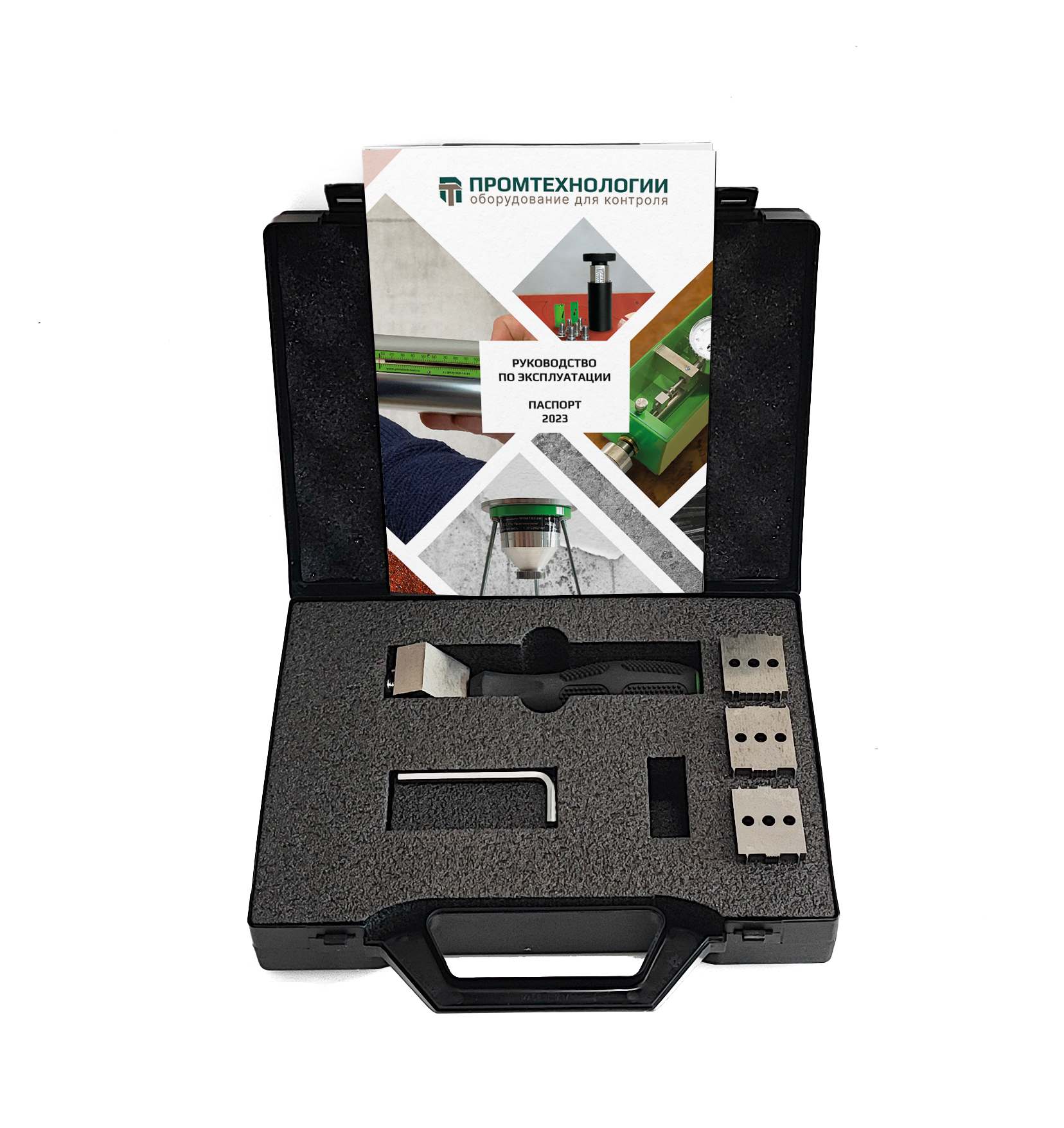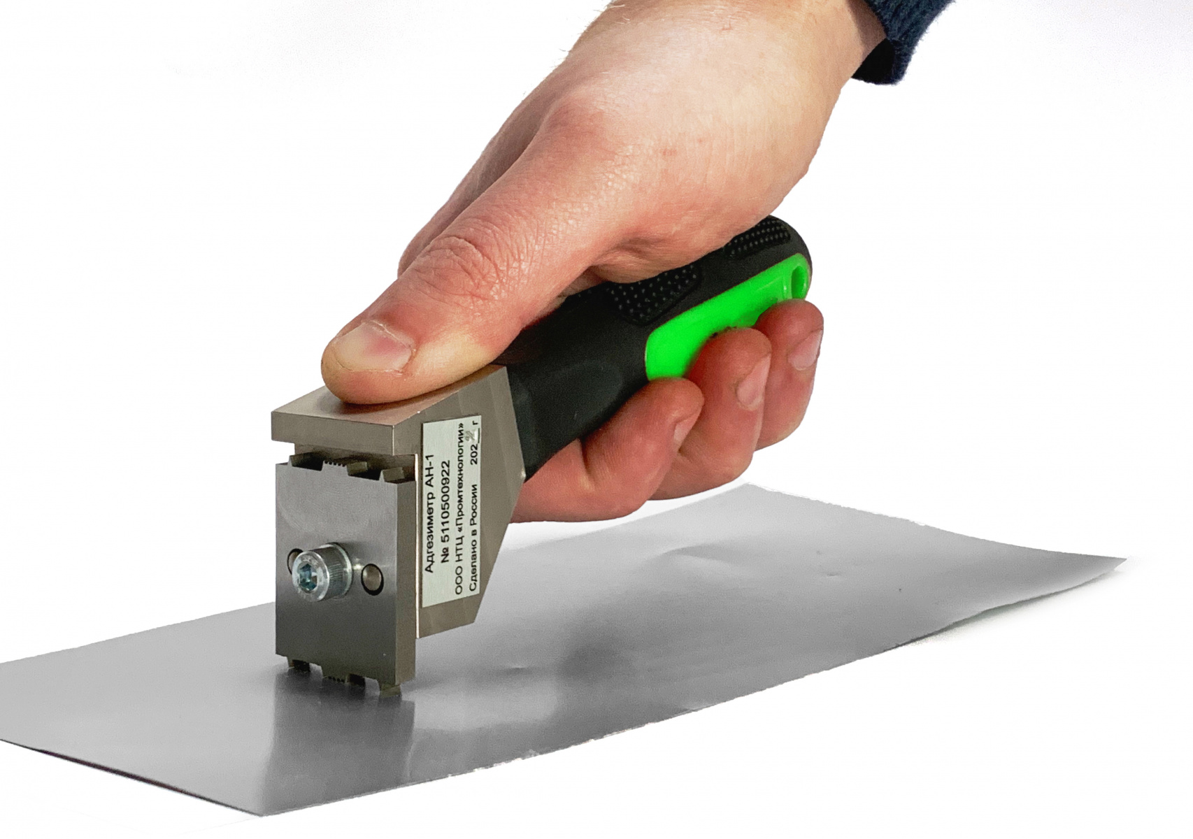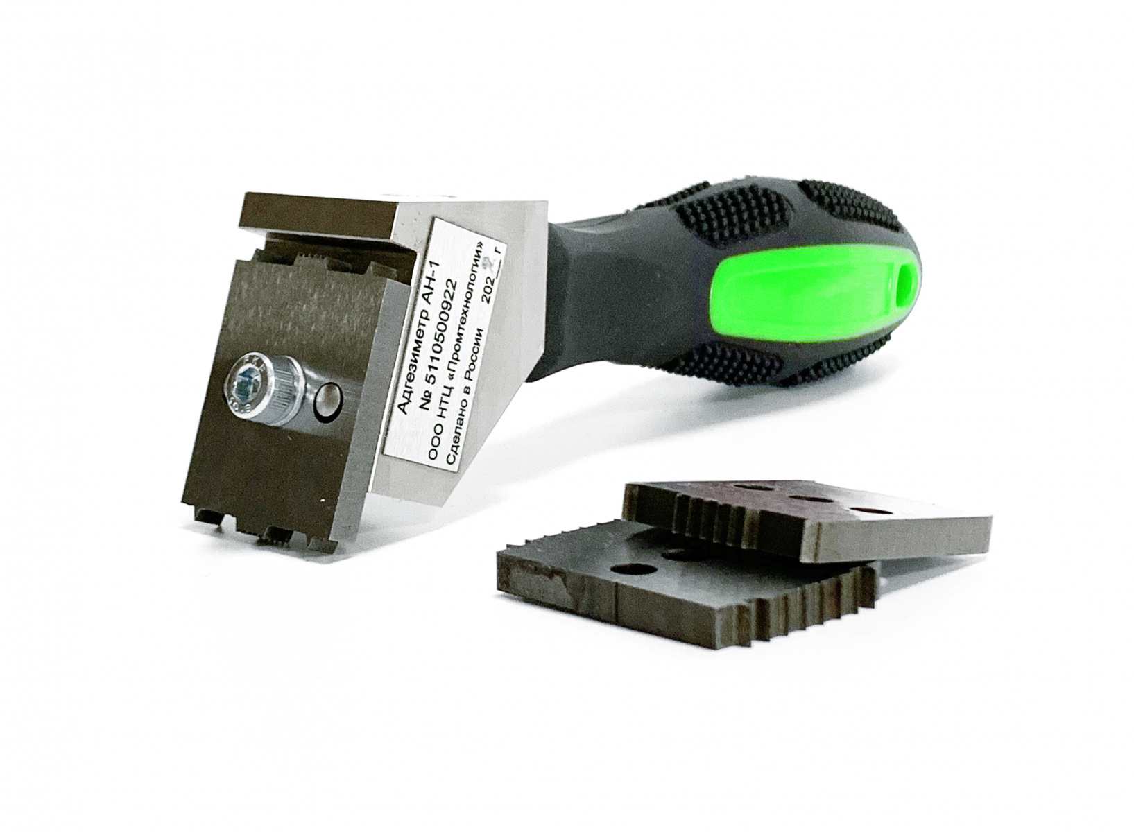 Это надежный и простой механический прибор представляющий из себя прорезиненную ручку с установленным на нее держателем, куда крепится двусторонний нож. Держатель и ножи адгезиметра выполнены из металла, ручка имеет углубления для удобного хвата. Использование двухсторонних ножей позволяет продлить ресурс стандартного комплекта, а возможность их заточки делает ПРОМТ АН-1 долговечным и надежным устройством для контроля адгезии методом надрезов. Адгезиметр не требует специальных навыков для работы с ним и позволяет оперативно контролировать качество покрытий в полевых и лабораторных (цеховых) условиях.