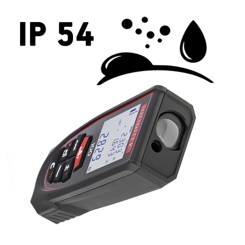 INFINITER 100 можно использовать для работы в помещении и на улице. Класс защиты корпуса имеет самый актуальный из существующих на сегодняшний день стандартов — IP 54. Лазерный дальномер с такой степенью пылевлагозащиты защищен от попадания внутрь пыли и брызг.