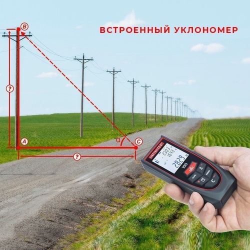 Благодаря встроенному уклономеру вы сможете вычислять горизонтальное и вертикальное положение от места установки прибора до объекта. Эта функция будет весьма полезна при проведении геодезических и строительных работ. Даже наличие преграды (например, столба или дерева) не помешает определить высоту объекта и расстояние до него.