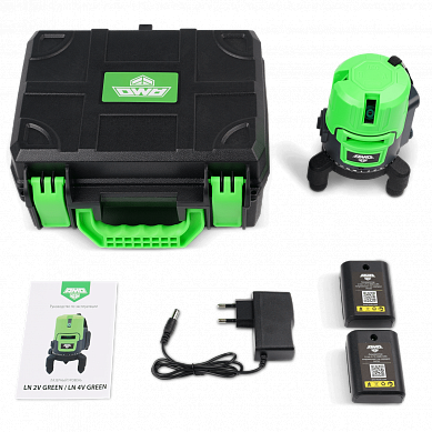 В комплект поставки лазерного нивелира АМО LN 2V входят два аккумулятора, заряда которых хватит на целый рабочий день. При необходимости устройство можно подключить сети и продолжить работу, если батареи разрядились.