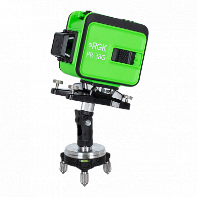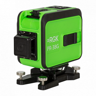 Корпус лазерного построителя плоскостей RGK PR-38G отлит из прочного шагреневого АБС-пластика, к которому не липнет пыль. Управляющие элементы и кромки, на которые обычно приходятся удары при падении, прорезинены. Рельефные кнопки и рычаг включения задействуются четко, ими удобно пользоваться в рабочих перчатках. Нивелир не боится попадания водяных брызг.