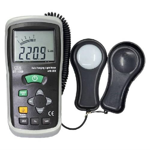 Датчик DT-1309 освещения подсоединен к основному устройству при помощи шнура длиной 1,5 метра, это позволит вам совершать измерения даже в труднодоступных местах. Во время измерения слабых источников света вам не понадобится дополнительное оборудование, так как люксметр DT-1309 прекрасно справится с этой задачей.