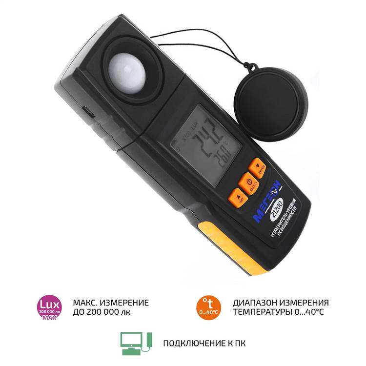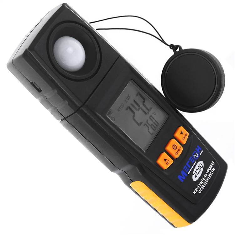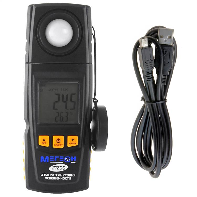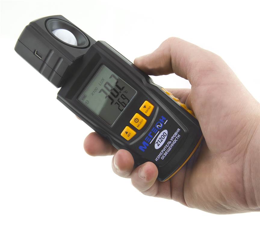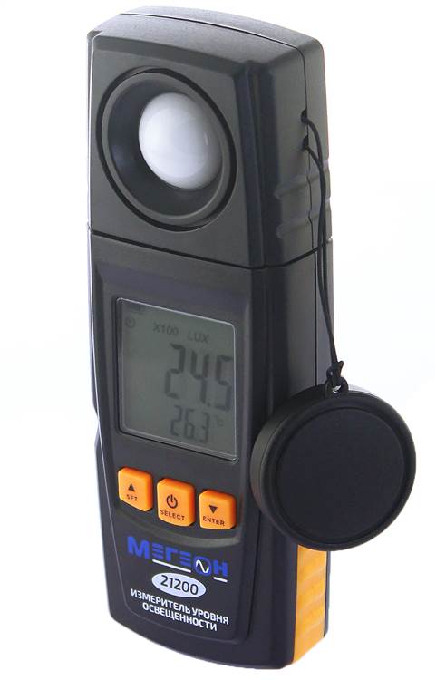Цифровой измеритель освещенности МЕГЕОН 21200 представляет собой компактное измерительное устройство, которое воплотило в себе функции люксметра и термометра. Прибор широко применяется на различных строительных и промышленных объектах, а также в быту. Благодаря малому весу и небольшим габаритам прибор с лёгкостью может поместиться в кармане. Отличительной чертой этой модели является обширный функциональный потенциал - три единицы измерения освещённости и две единицы измерения температуры. Еще одной отличительной особенностью люксметра МЕГЕОН 21200 является автоматический выбор диапазона измерений, а интегрированная подсветка дисплея позволяет использовать прибор даже в плохо освещенных помещениях. Благодаря возможности подключения к персональному компьютеру, полученные данные с прибора можно обработать и систематизировать.