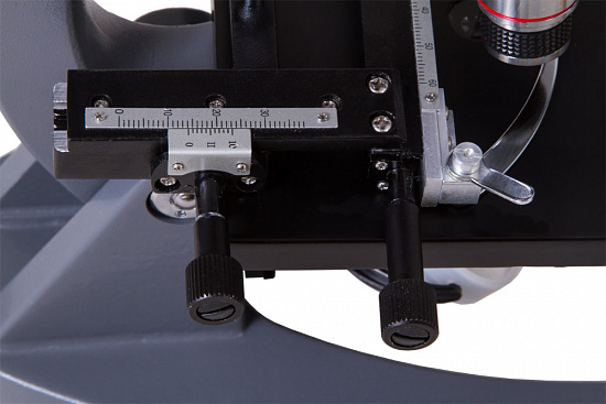 В револьверное устройство микроскопа уже установлены три объектива разной кратности. Менять увеличение микроскопа можно прямо во время наблюдений. Монокулярная насадка позволяет использовать окуляры разной кратности, два из них уже включены в комплект поставки. На предметный столик установлен препаратоводитель, с помощью которого препараты можно максимально точно располагать под объективом.