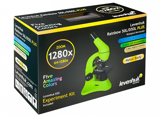 Качественная оптика, широкий диапазон увеличений, надежная и эргономичная конструкция и богатая комплектация – все это микроскоп Levenhuk Rainbow 50L PLUS! Комбинированная подсветка позволяет изучать самые разнообразные препараты – от монет и бумаги до тончайших срезов мышечной ткани. Микроскоп прекрасно подойдет школьнику, студенту-биологу и даже сотруднику исследовательской лаборатории.