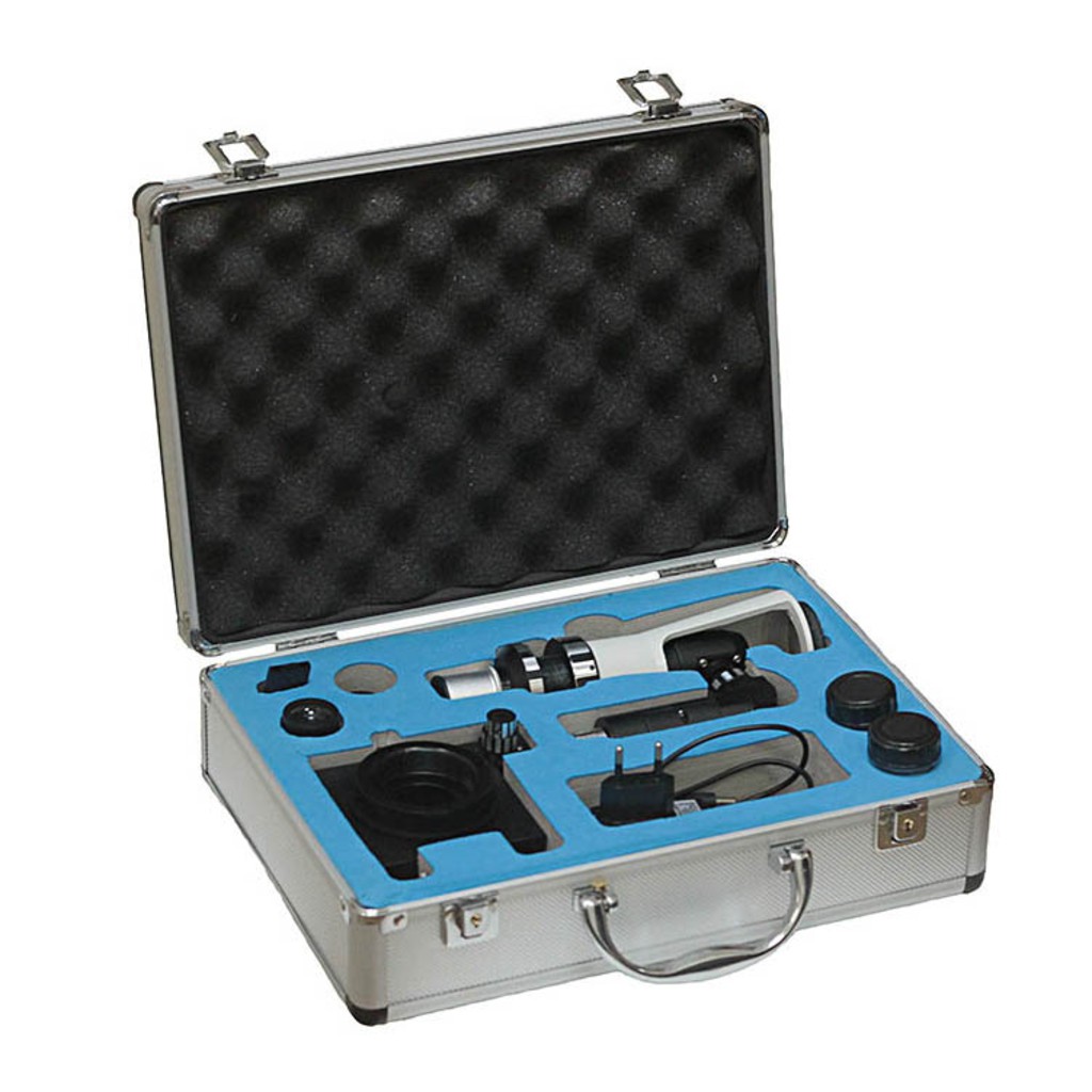 Светодиодное, через объектив, с возможностью работы от сети или встроенного аккумулятора. Возможность регулировки яркости освещения. |