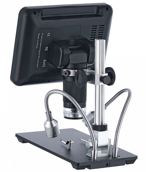 Цифровой микроскоп оборудован большим дисплеем диагональю 18 см для подробного изучения объекта и демонстрации. При необходимости пользователь может настроить баланс белого, экспозицию или изменить наклон экрана для упрощения длительной работы.