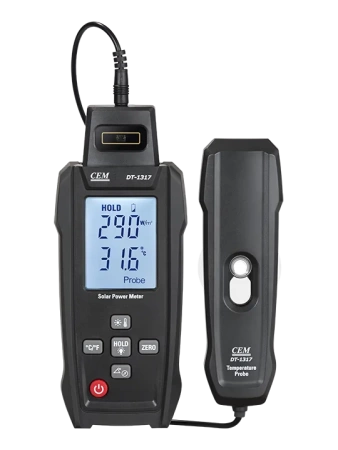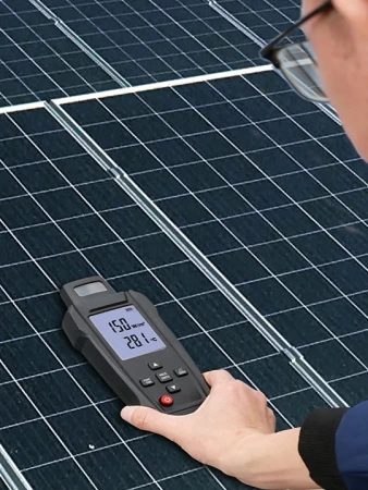 Измеритель интенсивности солнечного излучения был разработан, чтобы упростить установку, ввод в эксплуатацию и устранение неисправностей фотоэлектрических батарей, измерять температуру, наклон и направление солнечной батареи с помощью одного портативного инструмента. Прибор отличает компактный дизайн и легко читаемый высококонтрастный ЖК-экран для считывания результатов измерений под прямыми солнечными лучами.