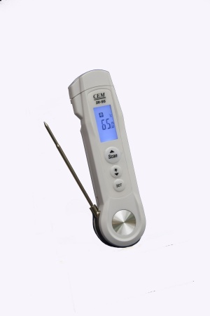 Пирометр прост в использовании благодаря доступному для понимания интерфейсу, который управляется всего тремя кнопками: для проведения замеров, изменения режимов и активации подсветки. Для удобства мониторинга температур предусмотрена возможность установки пороговых показателей, при превышении которых пирометр CEM IR-95 издает звук. Опция удержания данных на экране позволяет вести учет и документацию. Даже на небольшом экране отображаются такие данные, как текущая температура, активный режим работы, выбранная единица измерения, индикация заряда аккумулятора и установленные минимальные/максимальные пороги.