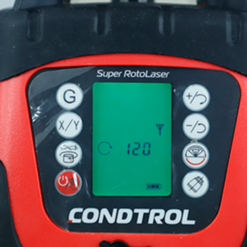 Super RotoLaser CONDTROL – ротационный лазерный нивелир, оснащенный лазерным отвесом, с электронным датчиком уклона, обеспечивающий cамовыравнивание и работу в осях X, Y, Z.