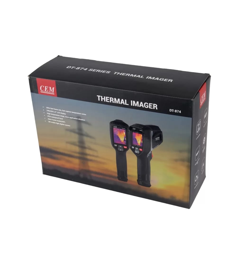 Тепловизор CEM DT-874 — высокотехнологичное устройство, обладающее высоким разрешением матрицы и широким разбегом измеряемых температур от -20 до +400°С. Он оснащён функцией автоопределения горячих и холодных мест, а также удобным USB Type-C разъёмом для зарядки.