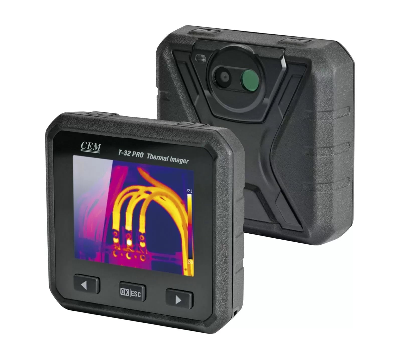 Тепловизор CEM T-32 PRO - незаменимый инструмент для профилактического обслуживания, диагностики неисправностей и инспекций промышленного и электротехнического оборудования. Устройство позволяет получать тепловые изображения объектов, а также сохранять их на SD-карту для последующего просмотра на ПК.